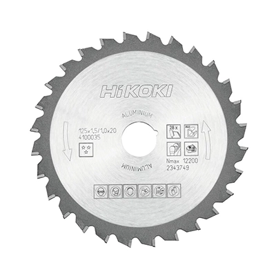 Disco de Sierra TCT Laminado/Aluminio Hikoki 125 x 20mm, Z28 Trapezoidal/Plano