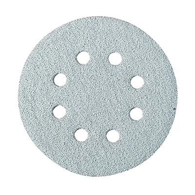 Especialmente para eliminar o desbastar pintura, laca, barniz o yeso, la gama de abrasivos HiKOKI incluye papel de lija blanco. Los granos de óxido de aluminio blanco con revestimiento de esterato cálcico, que evita la obstrucción del grano, están adheridos a este papel con una doble capa de resina sintética. Los granos recubiertos tienen la propiedad adicional de permanecer afilados durante mucho tiempo; una buena propiedad para la eliminación de material. El esterato de calcio actúa como agente desmoldeante; impide que el grano caliente se adhiera a la cara abrasiva del papel. La rotación constante de la base de lijado evacua eficazmente el abrasivo hacia los bordes. Este resultado es aún más notable cuando se utiliza un sistema adecuado de extracción de polvo. La resina utilizada contribuye a alargar la vida útil de estos abrasivos. Permanece estable bajo el calor de fricción generado durante el proceso de lijado y, en parte por ello, es muy utilizada en la industria del automóvil.